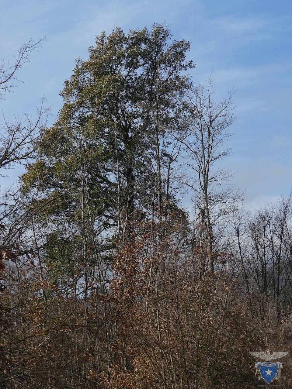 Questo esemplare di cerro-sughera si trova a valle dell’abitato di Nociveglia, in corrispondenza della croce eretta a ricordo delle Missioni negli anni 1939, 1997 e 2018.
