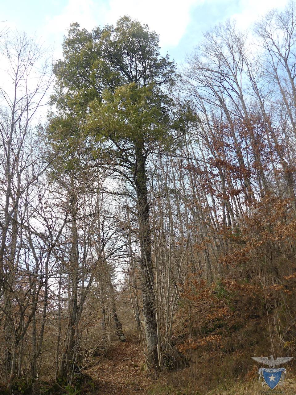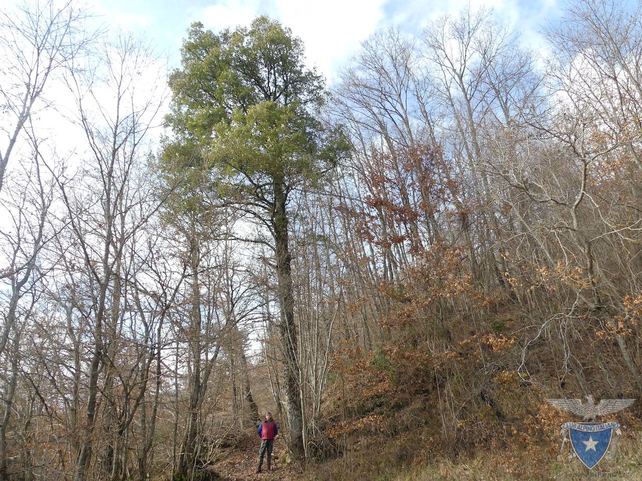 Questo esemplare di cerro-sughera si trova a valle dell’abitato di Calice, lungo la carrareccia (era l’antica strada comunale) che sale da Ponte Ceno e dove ancora oggi sono presenti muretti a secco e tratti selciati.