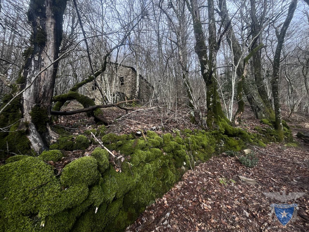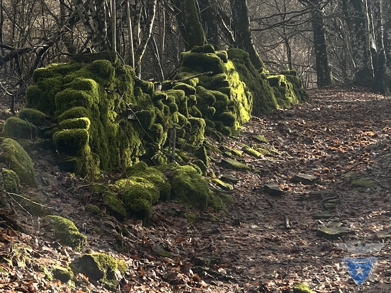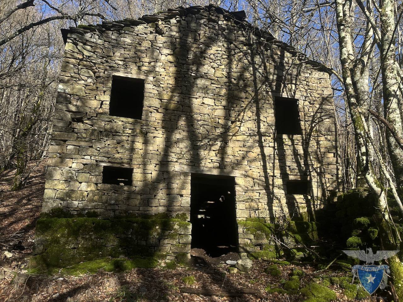 Il sentiero vero e proprio, caratterizzato dalla presenza di muretti a secco e tratti selciati, inizia da loc. Lago dell’Olmo e sale verso le abitazioni abbandonate di Case Supparano.