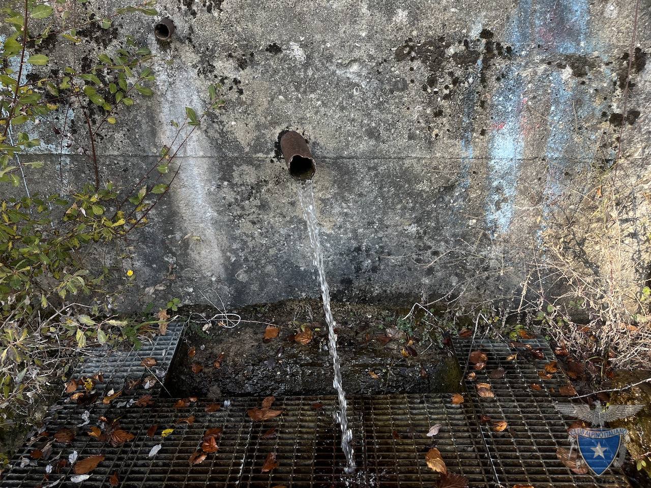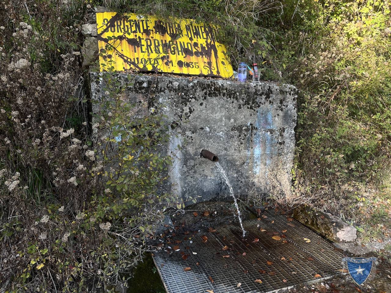 Raccoglie l’acqua di sorgente ferruginosa tramite una cannella in ferro innestata su di un parete in cemento.