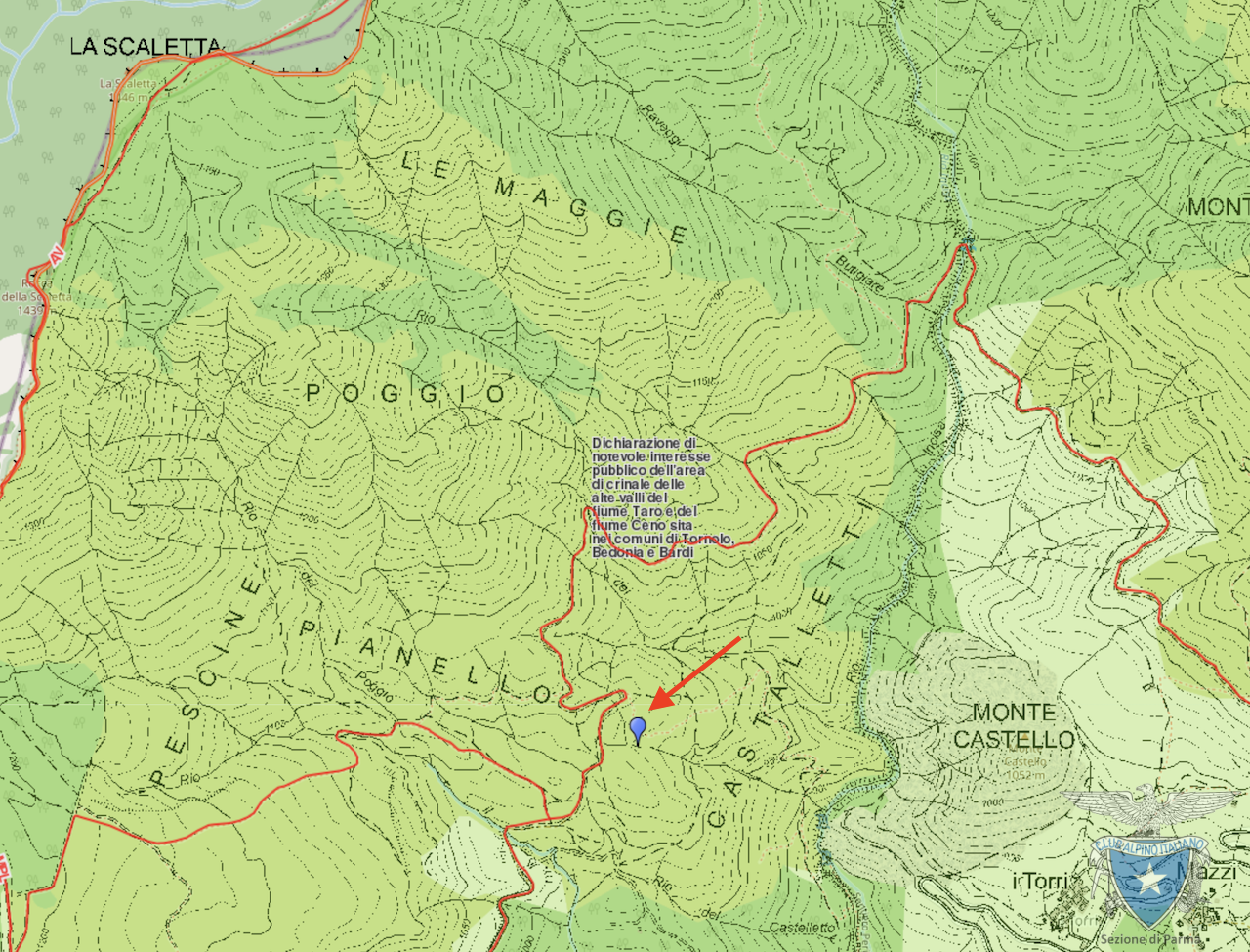 La sorgente si trova in loc. Pianello (cfr. carta tecnica regione E.R.), in alta Val Taro, al di sotto del sentiero n. 867 che da Campeggi conduce alla torre piezometrica, sul versante destro orografico del torrente Incisa.