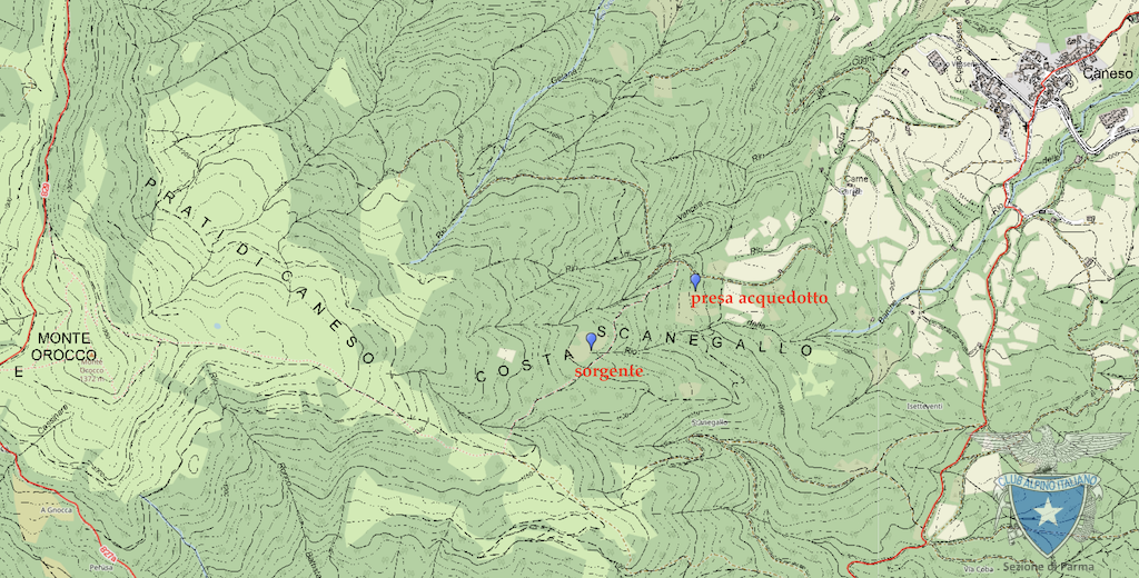 La sorgente scaturisce alle pendici del M. Orocco, lungo il sentiero storico che dal paese conduce alla vetta, segnato con il n. 827B. Più in basso, a poca distanza, si trova una delle due prese dell’acquaedotto rurale di Caneso, quella denominata della sorgente Barche.